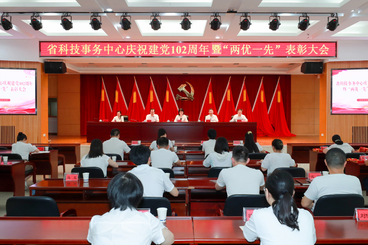7月18日上午,为弘扬伟大建党精神,切实发挥党支部战斗堡垒作用和党员先锋模范作用,省科技事务中心举行庆祝建党102周年暨“两优一先”表彰大会。事务中心党委书记、主任卿涧波出席并讲授专题党课,省科技厅人事处处长、全体中心领导出席。