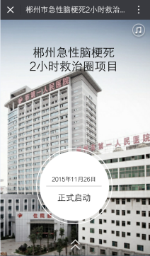 二是建立急性脑梗死救治圈。整合病情评估、120急救、院内急救绿色通道,构建以国家级脑卒中筛查与防治基地——郴州市第一人民医院为中心,覆盖车程2小时的急性脑梗死救治圈,让患者在黄金6小时内获得救治,提高急性脑梗死救治成功率,降低死亡率和致残率。救治圈充分发挥互联网的优势,建立急性脑梗死2小时救治圈微信救治平台,拓展网络宣传道路;并通过微信平台进行病例讨论、技术培训等。
