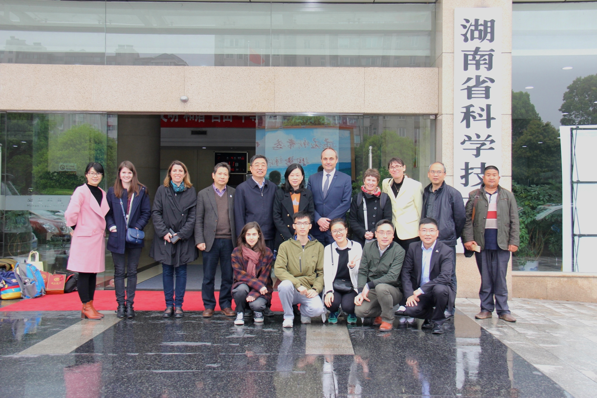 4月11日上午,由法国驻武汉总领事馆科技参赞莫澜先生率中法ATIM-Hunan项目(湘江流域矿山酸性废水生物处理关键技术集成与示范项目)法方专家代表团一行访问亚欧水资源研究和利用中心,并进行项目工作座谈会。湖南省科技厅副巡视员刘琦出席会议,她代表湖南省科技厅对莫澜先生一行表示欢迎,并表示在中法专家的共同努力下,项目合作成果显著,2016年11月获得了中法地方合作奖的殊荣,她充分肯定中法专家为项目做出的积极贡献,希望双方进一步在政策互鉴,技术转化,合作研究与推广以及商务合作方面加强联系。莫澜先生表示中法项目单位双方已经在合作研究、人员交流方面取得一定成果,希望今后在项目基础上探寻多形式、多层次的合作,深化项目合作成果。法方专家汇报了项目进展情况,双方专家根据前期矿区实地考察情况以及矿区废水采样分析情况对下阶段项目合作进行了工作部署,并探讨了针对酸性废水开发低成本、低动力生态修复方法,重金属污染治理方案等相关内容。