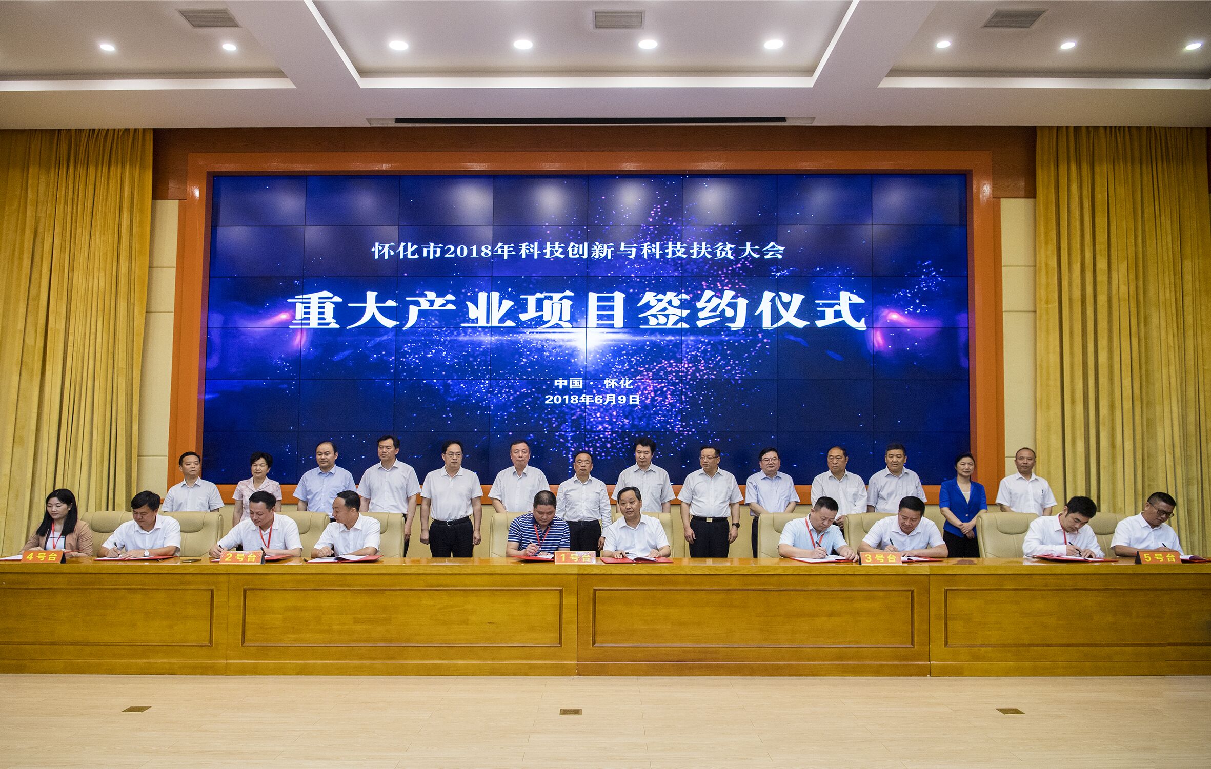 会上,播放了怀化市科技创新与科技扶贫专题片,市人民政府与中国燃气等15家企业集中签约,投资总额达553亿元,其中世界500强企业2个、中国500强2个,与湖南省产业技术协同创新研究院、上海交通大学、湖南大学、湖南农业大学签署战略合作协议。中国燃气控股有限公司总裁黄勇等3位嘉宾作发言。