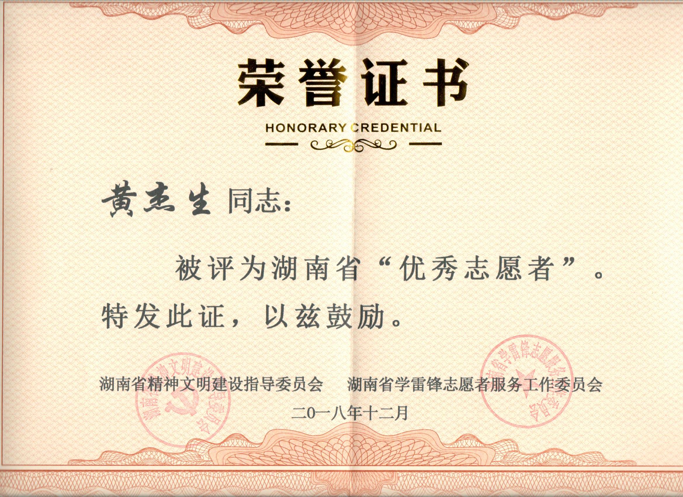 近日,由省文明委、省志工委联合举办的湖南省学雷锋志愿服务优秀志愿者、优秀志愿服务组织、优秀志愿服务项目表彰大会上,省科技厅志愿服务工作再获殊荣,黄杰生同志荣获湖南省“优秀志愿者”称号。