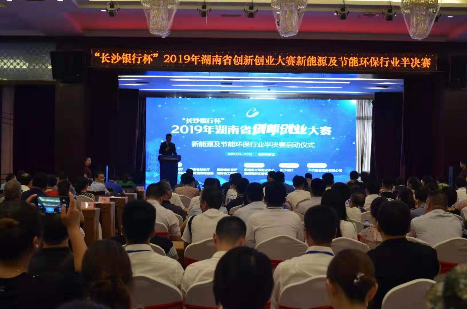 8月22日-23日,“长沙银行杯”2019年湖南省创新创业大赛新能源及节能环保行业半决赛在湘潭高新区举行,省、市相关部门负责人,各市州科技局、国家高新区、有关高等院校、参赛单位代表和投资机构代表300多人参加了启动仪式,来自全省各地的98个企业和团队参加此次半决赛。