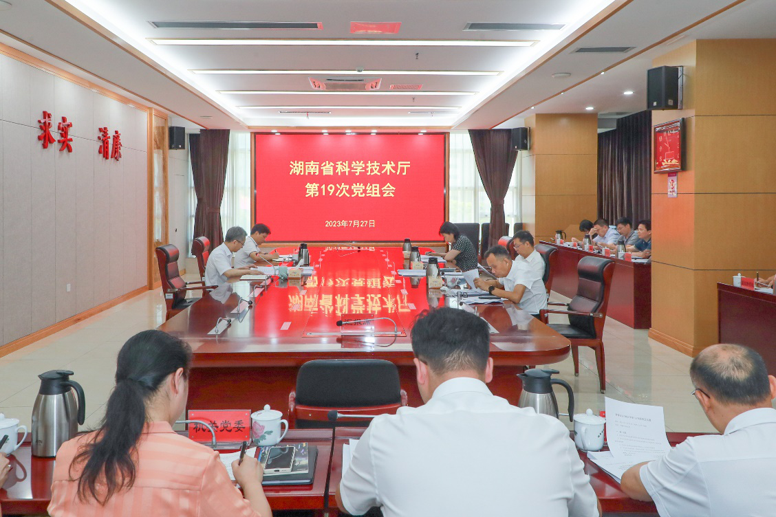 7月27日上午,省科技厅党组书记、厅长李志坚主持召开党组会议和厅务会,传达学习习近平总书记近期重要讲话精神,省委、省政府近期工作部署要求,研究省领导批示件和“四重”工作落实,市县创新驱动能力提升和科技创新能力提升、市州打好科技创新攻坚仗、高新区创新驱动发展考评办法,《湖南省实验动物管理条例(草案建议稿)》起草,潇湘科技要素大市场工作站认定等工作。