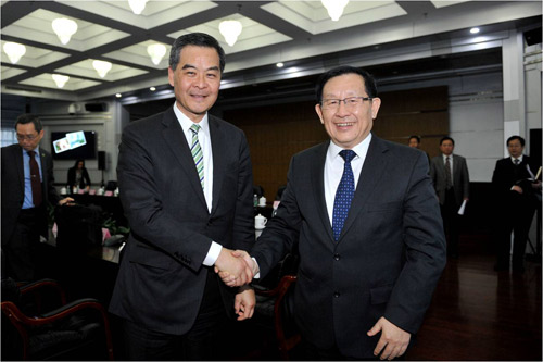 3月3日上午,科技部万钢部长会见了香港特别行政区行政长官梁振英一行。