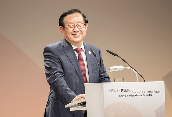 万部长指出,在中德全方位战略伙伴关系框架下,中德创新合作形成高度共识,取得积极进展,主要体现在以下三个方面:一是科技创新战略紧密对接,两国相继发布《中国战略》和《德国战略》,将发挥“创新引擎”作用,在应对全球挑战、迎接新一轮产业革命方面,共担责任、共享机遇;二是开创了“2+2”合作模式,两国大学院所和企业结盟,在电动汽车、智能制造、清洁水、半导体照明、清洁能源、未来城市等平台上,面向市场开拓全产业链条合作,切实推进科研成果转化,为实体经济做出积极贡献;三是更多青年人依托中德创新合作成就事业,在大学院校和企业开展联合研究和创新实践,不断开创合作新领域、新模式,实现新构想。万部长强调,两国在制造领域的合作风生水起,例如中车与西门子协调开发第三方市场,高技术产品走向美国、巴西,戴姆勒与比亚迪、中国航天科工集团与SAP、华为与KUKA、海尔集团与菲尼克斯等都开启了战略合作。他表示,面向未来,中国科技部将与德方共同探索建立协同研发合作的联合资助新机制,共同开拓青年创新创业新空间,共同建立政策交流、行动对接和人员往来便利的新通道,围绕创新链布局合作链,探索更多合作新领域,结合“一带一路”倡议,携手推动建设创新型世界经济,推动全球包容性增长。