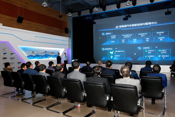 会议期间,万钢部长与参会专家一行考察了新能源汽车国家监测与管理平台建设运营情况,针对新能源汽车运行监控、分时租赁平台运行情况、利用大数据分析不同用户充电及用车行为等方面进行了深入交流。