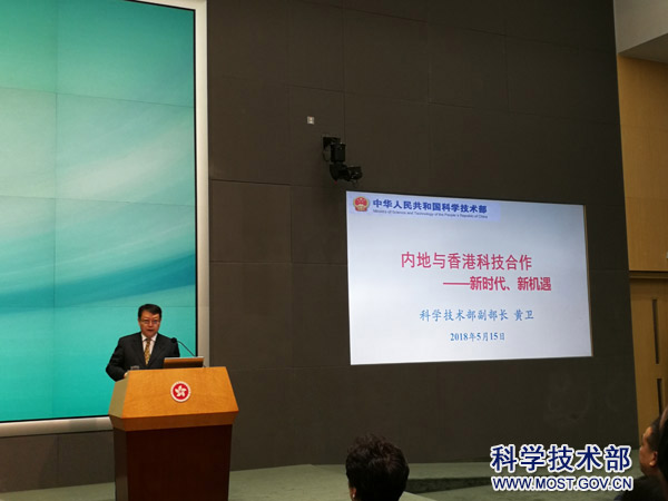 为宣传落实习近平主席对港科技创新工作的重要批示精神,科技部 财政部近日印发《关于鼓励香港特别行政区、澳门特别行政区高等院校和科研机构参与中央财政科技计划(专项、基金等)组织实施的若干规定(试行)》。2018年5月15日,科技部副部长黄卫应邀赴港参加香港特区政府举办的“内地与香港创科合作——新时代、新机遇”研讨会,传达习近平主席的重要指示精神,并对新政策的内容细节进行解读介绍。