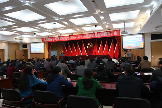 12月9日,湖南省科技厅举行学习贯彻党的十八届六中全会精神省委宣讲团报告会。省科技厅党组书记、厅长童旭东主持会议,省委宣讲团成员、省委党史研究室主任张志初作学习贯彻党的十八届六中全会精神专题辅导。省科技厅领导、厅机关和省协同创新院全体党员干部、省知识产权局副处级以上干部、厅属单位班子成员和党支部书记参加。