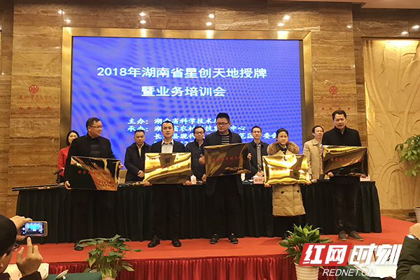 湖南省科技厅为2017年、2018年共92家国家级、省级星创天地授牌。