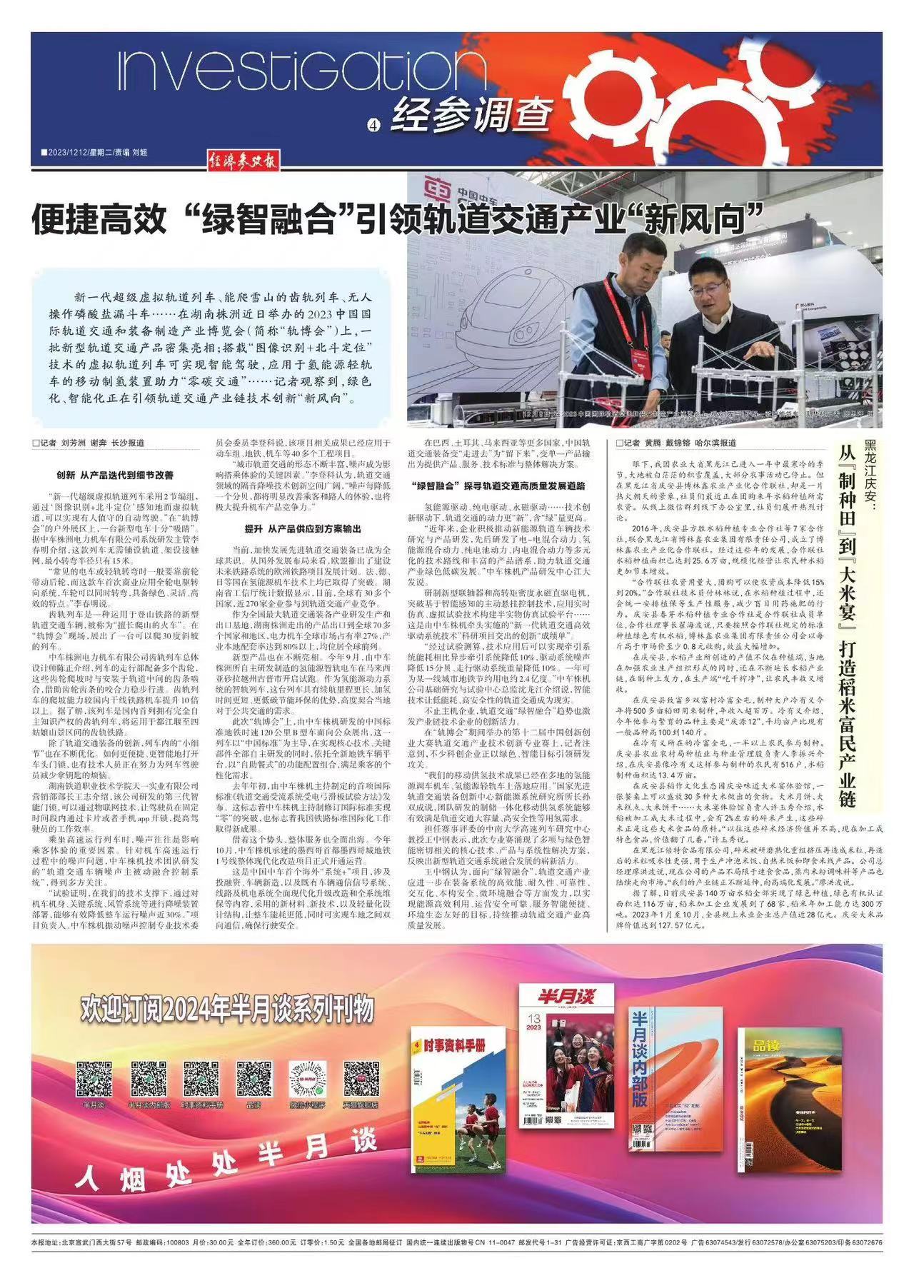 “近年来,企业积极推动新能源轨道车辆技术研究与产品研发,先后研发了电-电混合动力、氢能源混合动力、纯电池动力、内电混合动力等多元化的技术路线和丰富的产品谱系,助力轨道交通产业绿色低碳发展。”中车株机产品研发中心江大发说。