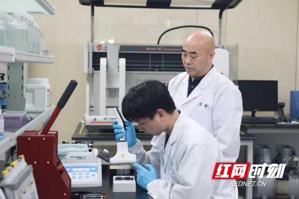 ▲华智生物生物技术与数据科学创新研究院执行副院长贾高峰指导团队成员做实验。
