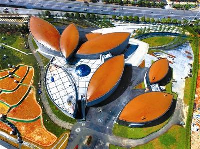 近日,世界首个以水稻为主题的博物馆——隆平水稻博物馆亮相湖南长沙。据悉,整个博物馆的灵感来自于水稻,其外观由多个形似“稻粒”的建筑组合而成,建筑排列成绽放的稻花形状。博物馆建筑面积约10000平方米,馆内有水稻历史与文化、水稻科技、袁隆平与杂交水稻3个基本展厅和一个临时展厅,将通过视频、照片、实物等,立体诠释我国悠久的稻作文化和农耕文明。目前该馆布展已进入收尾阶段,计划于5月19日免费对外开放。图为即将开馆的隆平水稻博物馆。