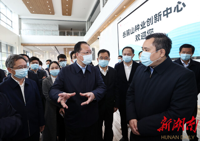 调研中,毛伟明强调,种业是农业的“芯片”,湖南种业发展有基础、有优势、有成效、有品牌,完全可以为打赢种业翻身仗作出重要贡献。要加大农业种质资源保护力度,推进农业种质资源普查、鉴定和利用,切实摸清“种子家底”,不断完善种质资源保护体系。要推进种业创新攻关,突出杂交水稻、油茶、油菜、辣椒、淡水鱼、茶叶、中药材等优势农产品,打造重大平台,聚集高端人才,在种业“卡脖子”问题上“啃硬骨头”,创制一批具有自主知识产权的新技术、新材料、新品种。要强化企业创新主体地位,不断完善科企合作、利益分享模式,向科技要效益、要生产力,推动技术成果加速向企业溢出,真正形成科研支撑市场、市场反哺科研的商业化育种模式。要完善种业知识产权保护,加强种业市场监管治理,建立健全与种业振兴行动相适应的知识产权保护体系。