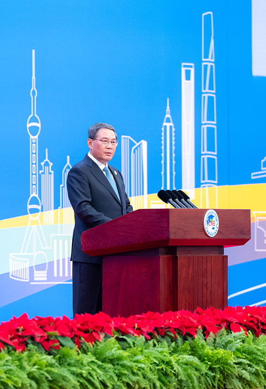 11月5日,国务院总理李强在上海出席第六届中国国际进口博览会暨虹桥国际经济论坛开幕式,并发表主旨演讲。新华社记者翟健岚摄