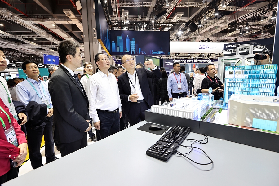 在技术装备展区,毛伟明参观了赛莱默、西门子、思爱普、GE集团、三菱电机、卡特彼勒、罗克韦尔自动化、NACHI(不二越)等企业参展装备,详细了解各家在智能制造领域的最新研发成果和市场应用情况等。他说,湖南是制造业大省,形成了3个万亿产业、16个千亿产业、4个国家级先进制造业集群。当前,我们正以“智赋万企”行动为牵引,加快推进制造智能化、企业智慧化、产业数字化。热忱邀请大家考察湖南、投资湖南、深耕湖南,把企业所长与湖南所需结合起来,助力中小企业数字化转型和专精特新发展,加速迈向高端化、智能化、绿色化。