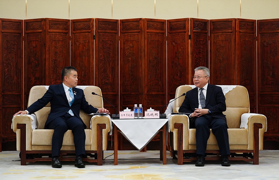 11月10日,省委书记沈晓明在长沙会见日本滋贺县知事三日月大造一行。