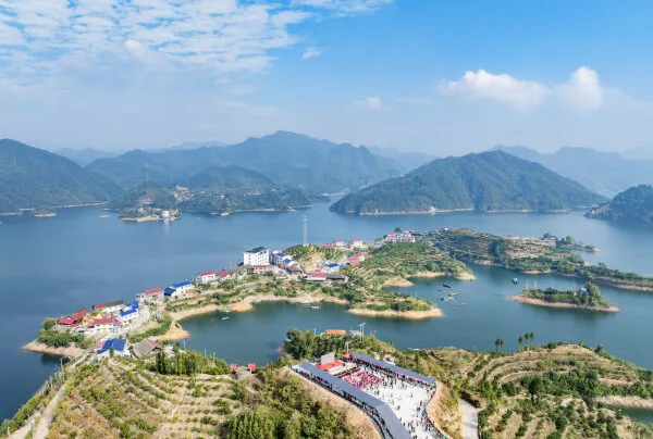 10月26日,安化县南金乡宝塔山村,镶嵌在青山绿水中的村落与蓝天白云相映成景,构成一幅宜居宜业和美乡村新画卷。湖南日报全媒体记者田超李健童臻熙摄