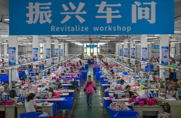 7月20日,凤凰县禾库安置区咏昌达手袋有限公司振兴车间,村民在赶制出口订单产品。湖南日报全媒体记者郭立亮摄
