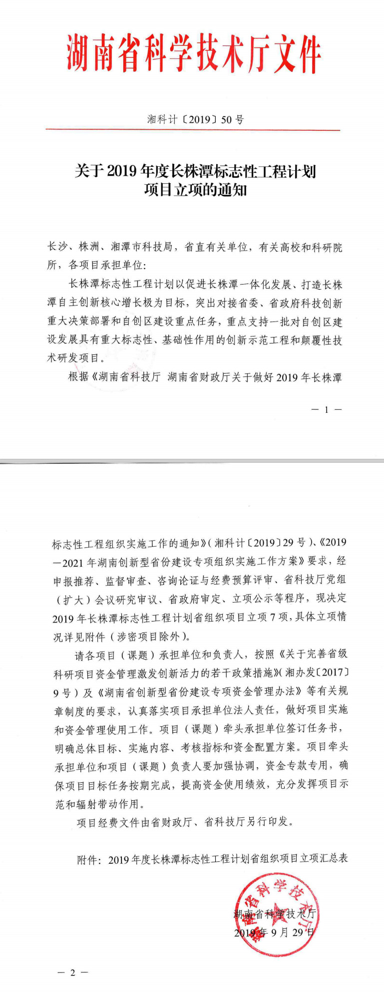 关于2019年度长株潭标志性工程计划项目立项的通知