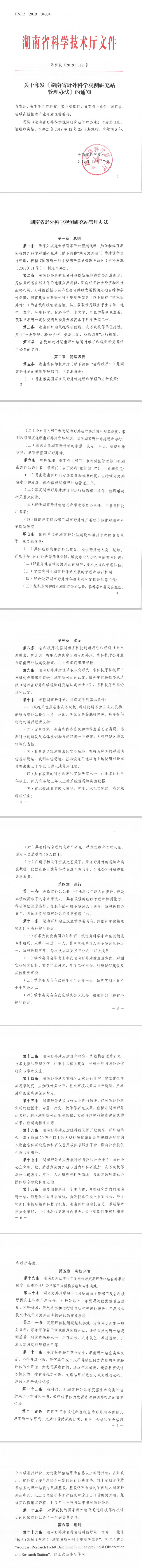 关于印发《湖南省野外科学观测研究站管理办法》的通知