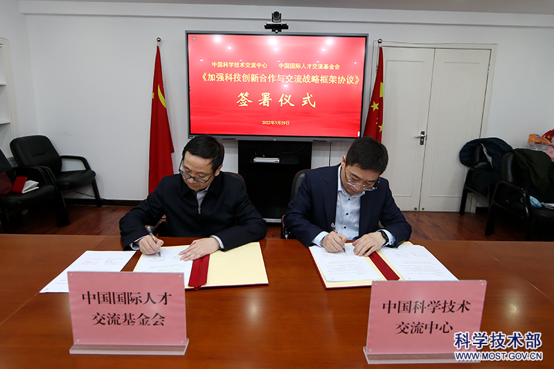 中国国际人才交流基金会与中国科学技术交流中心签署《加强科技创新合作与交流战略框架协议》