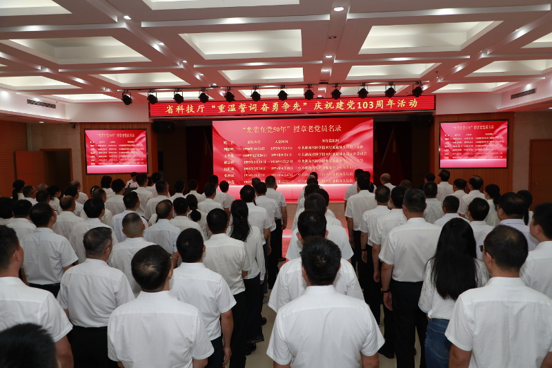 为进一步弘扬伟大建党精神,激发党员干部干事创业的精气神,7月1日下午,省科技厅举行“重温誓词奋勇争先”庆祝建党103周年活动,厅党组书记李志坚带领全体党员重温入党誓词,厅党组成员、副厅长周建元主持。